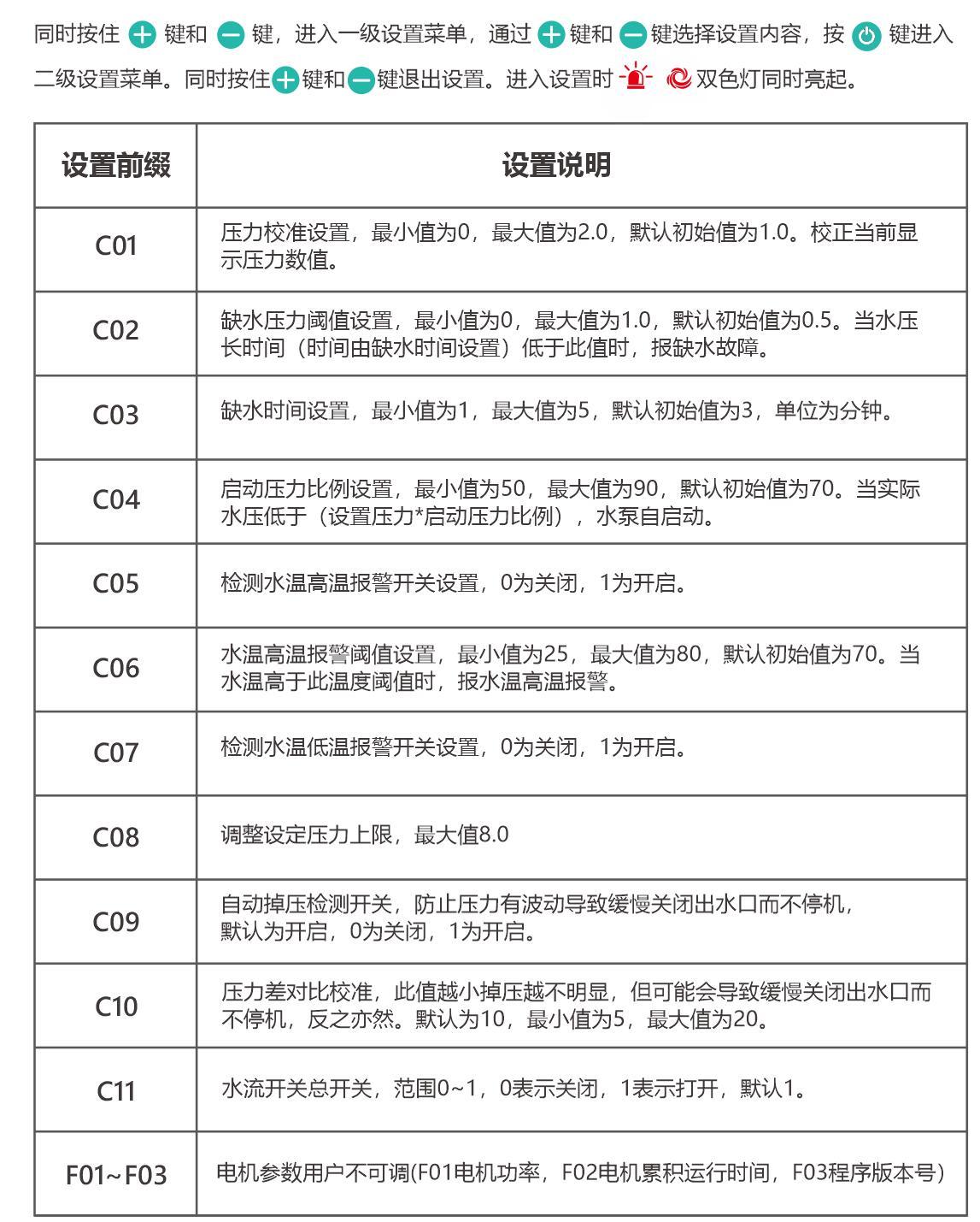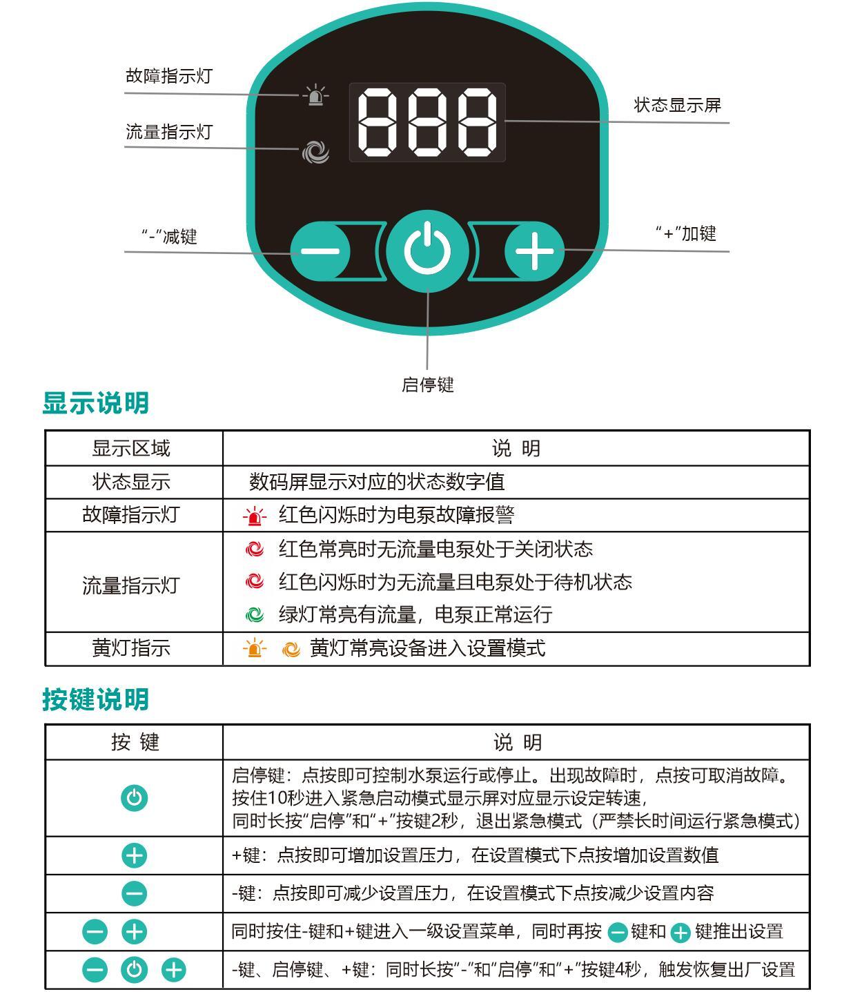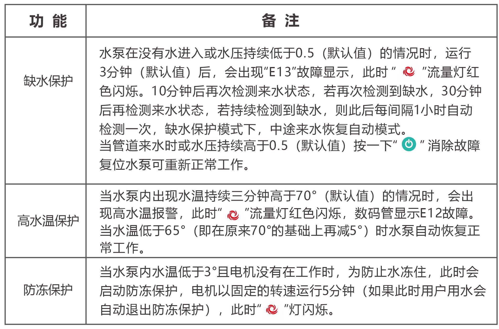 3、紧急模式为长时间不停机工作,不可缺水使用,仅限故障时应急使用,否则引起机器损坏。