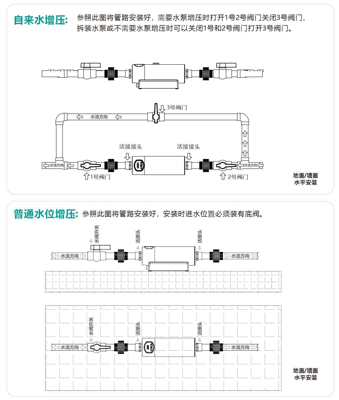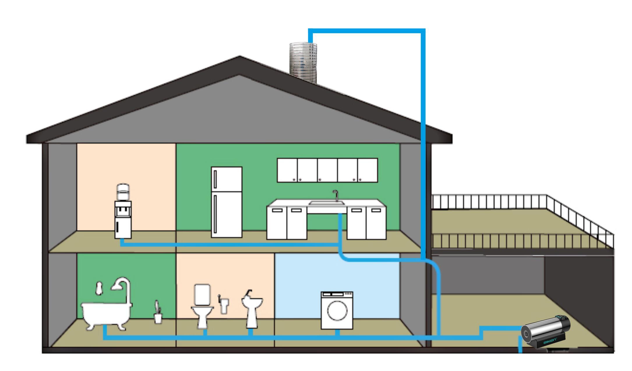 本产品可用于多种家庭供水场景,例如别墅、复式公寓、大平层等,家庭自来水增压、或用于屋顶水箱下増压。