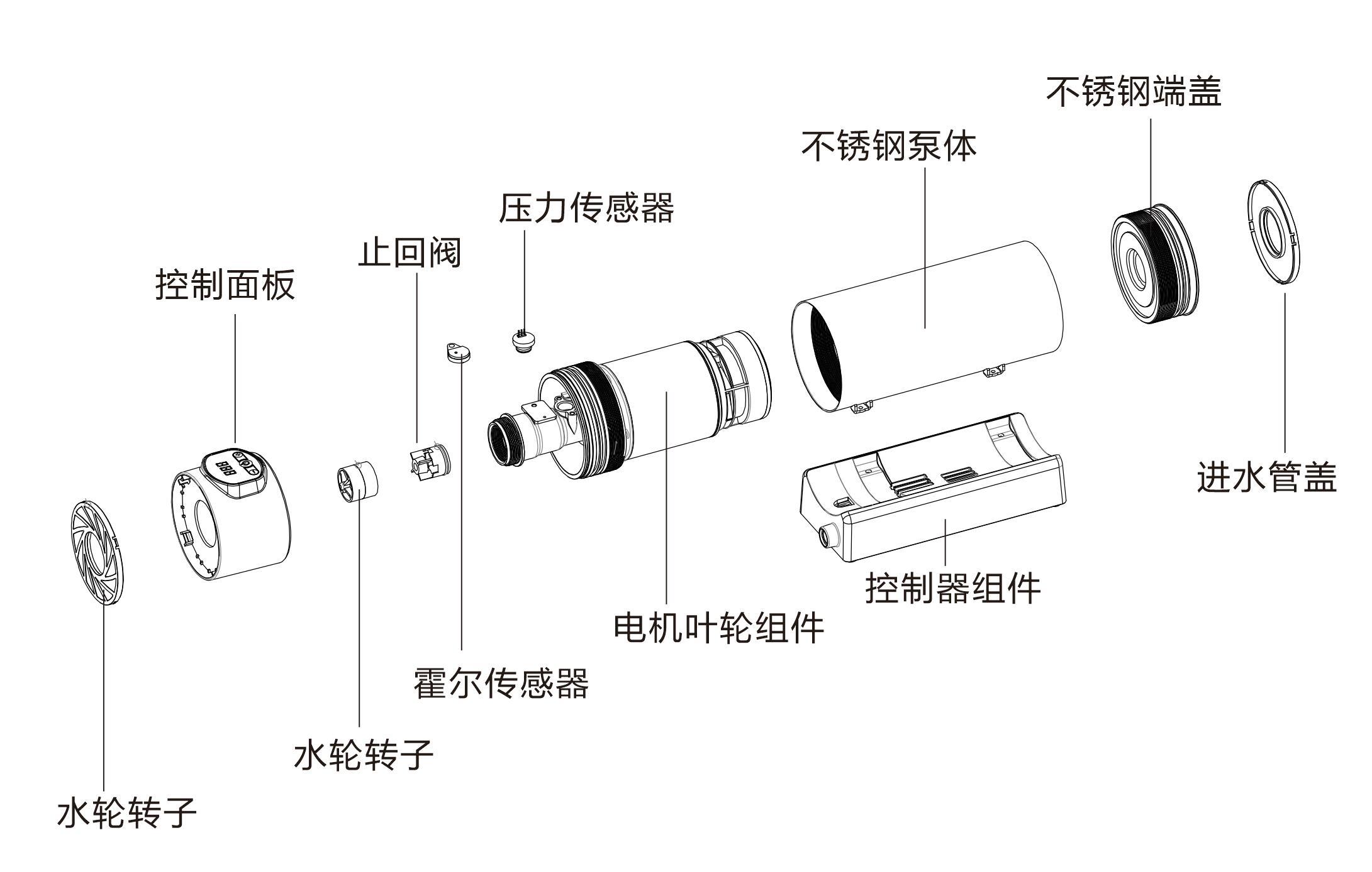 2、本产品需水管内水流达到一定水压流速方可自动启动运行,调速模式有低速模式和高速模式。